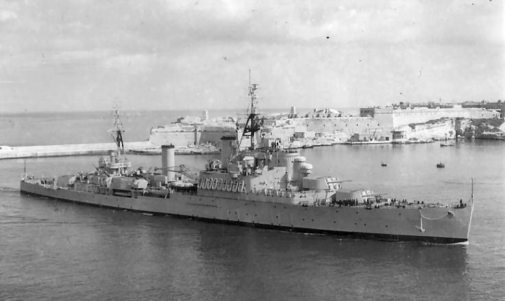 HMS Bermuda entering Grand Harbour, Malta, in 1954, when Harold Williams was serving aboard her.